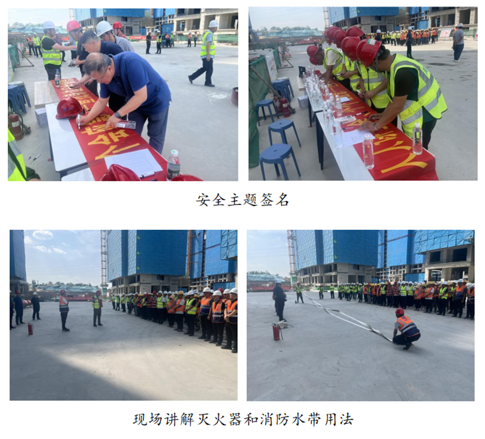 活动期间,大家积极参与安全主题签名和主题宣誓,讲解员现场讲解消防水带和灭火器的用法,解答安全生产相关知识,并开展了消防实战演练。集团公司分管安全生产的总经理助理黄志澎作重要讲话,强调了安全生产的重要性,要求各单位扎实做好今年防汛工作,并为一线工人发放防暑降温药品和安全知识手册200套。