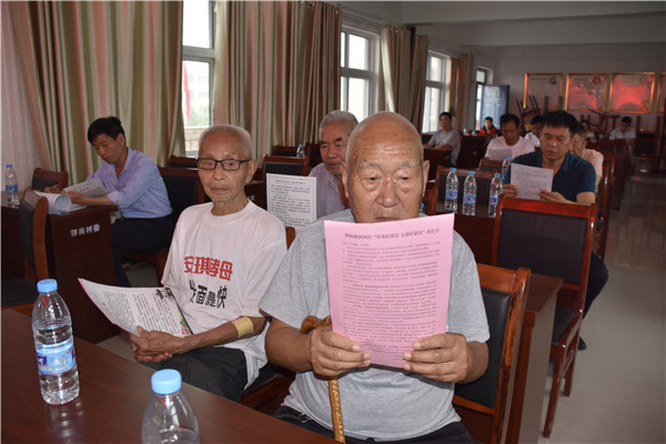 二、推进移风易俗倡议活动。集团公司志愿者带领村民学习了移风易俗相关内容,并向村民发放“推进移风易俗 破除陈规陋习”倡议书,倡导村民婚事新办,崇尚节俭;弘扬孝道,厚养薄葬,提倡简朴文明的丧葬礼俗,文明祭奠、低碳祭扫;破旧立新,倡树新风,杜绝收受礼金、大摆筵席、铺张浪费,自觉抵制互攀比、奢华阔气讲排场的不良习气等。通过发放倡议书、利用精神文明宣传栏、村史文化长廊等多渠道向村民宣传移风易俗活动,村民们纷纷承诺从自己做起、从点滴做起、从现在做起,自觉移风易俗,力行勤俭节约,弘扬时代新风,以实际行动,杜绝陈规陋习,树立文明新风。