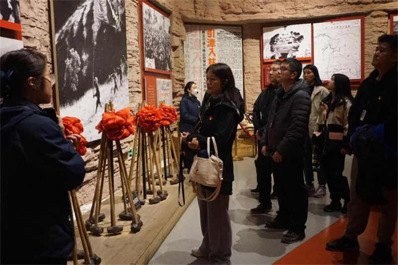 在实地践学中,同志们走“红飘带”、登“水长城”、参观红旗渠总干渠主要工程之一青年洞,实地见证了林县人民艰苦创业,在悬崖峭壁之上人工开凿天渠的伟大壮举,并亲身体验太行山的巍峨险峻,饱览“水长城”红旗渠的震撼与壮丽,感受林县人“劈开太行山”,不认命、不服输、敢于战天斗地的英雄气概。青年洞前,同志们在庄严的党旗下集体合影,激发党性观念,永远牢记自己的入党初心,表达为党的事业奋斗终身的决心和愿望。